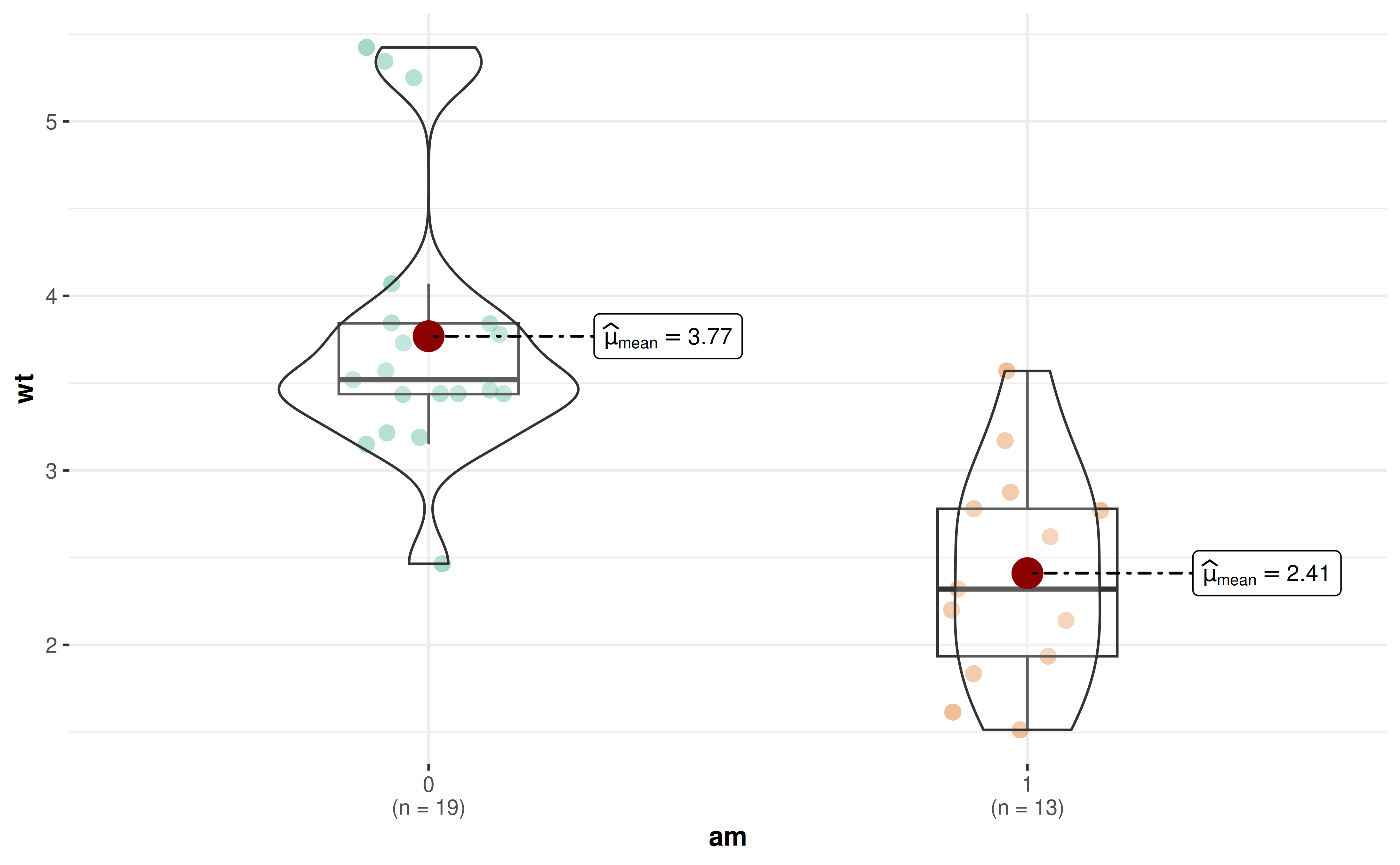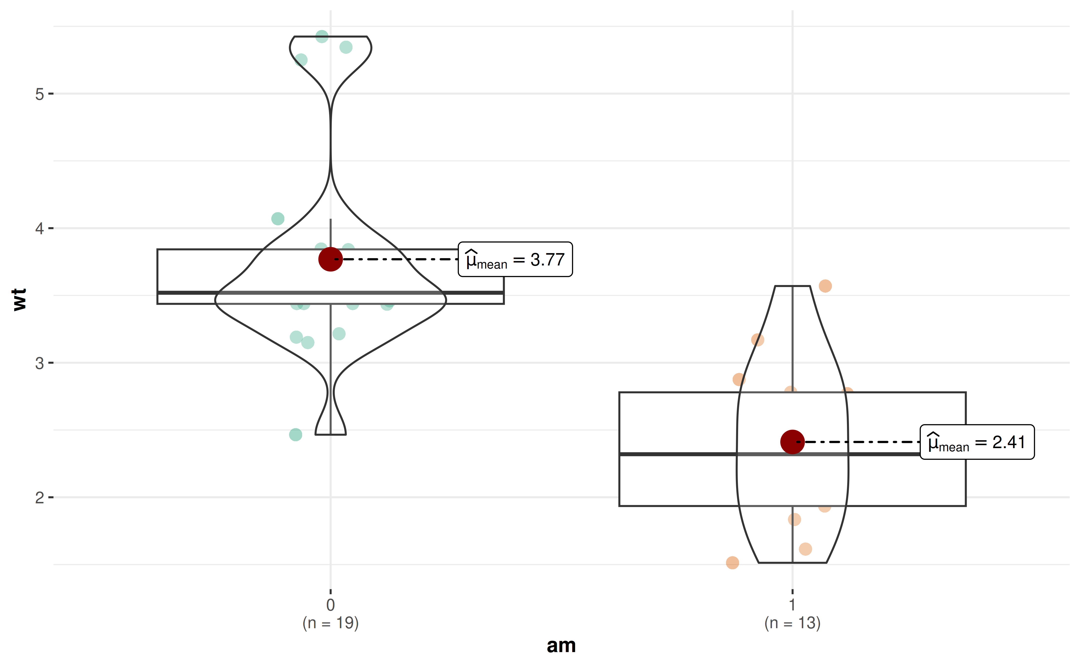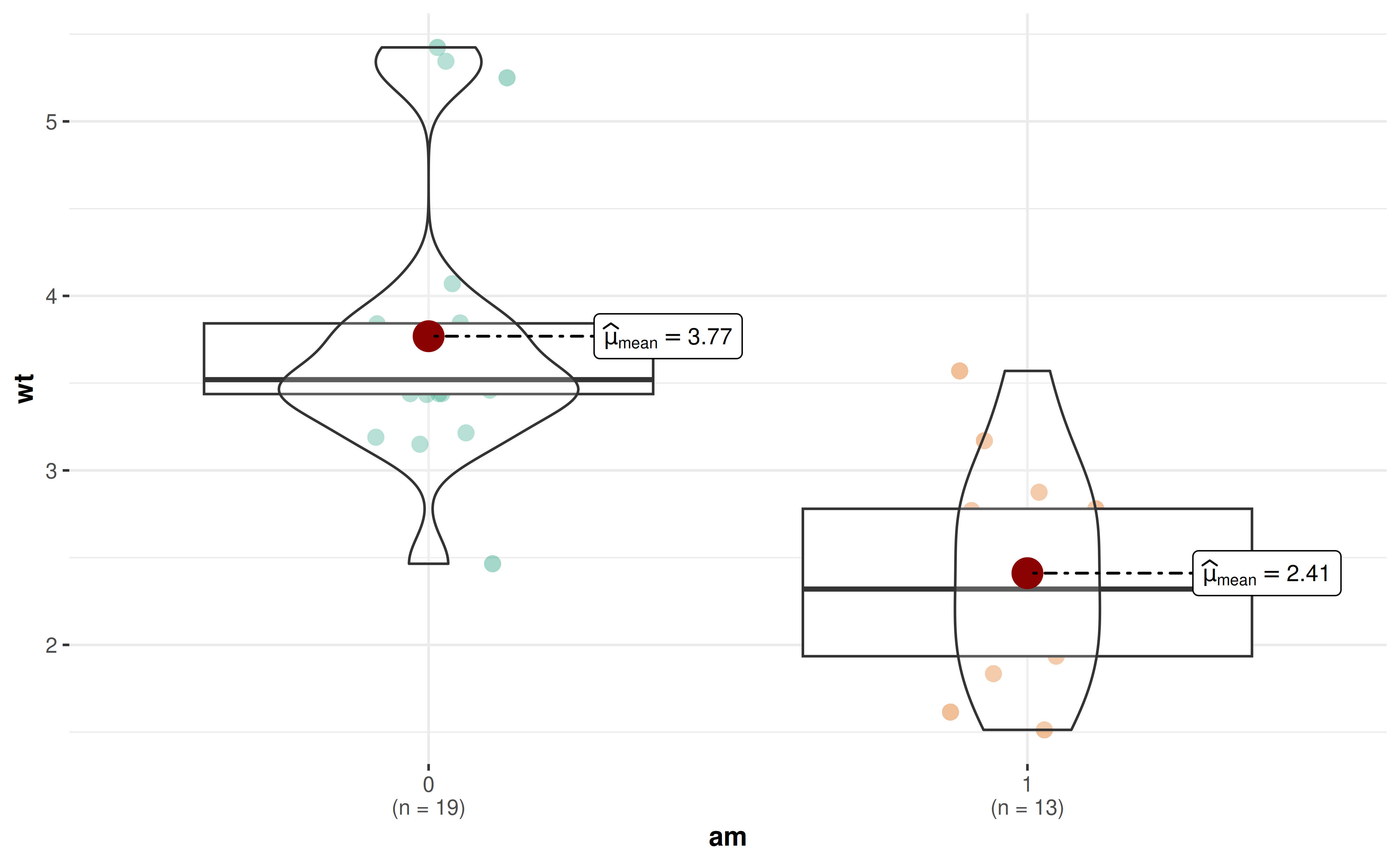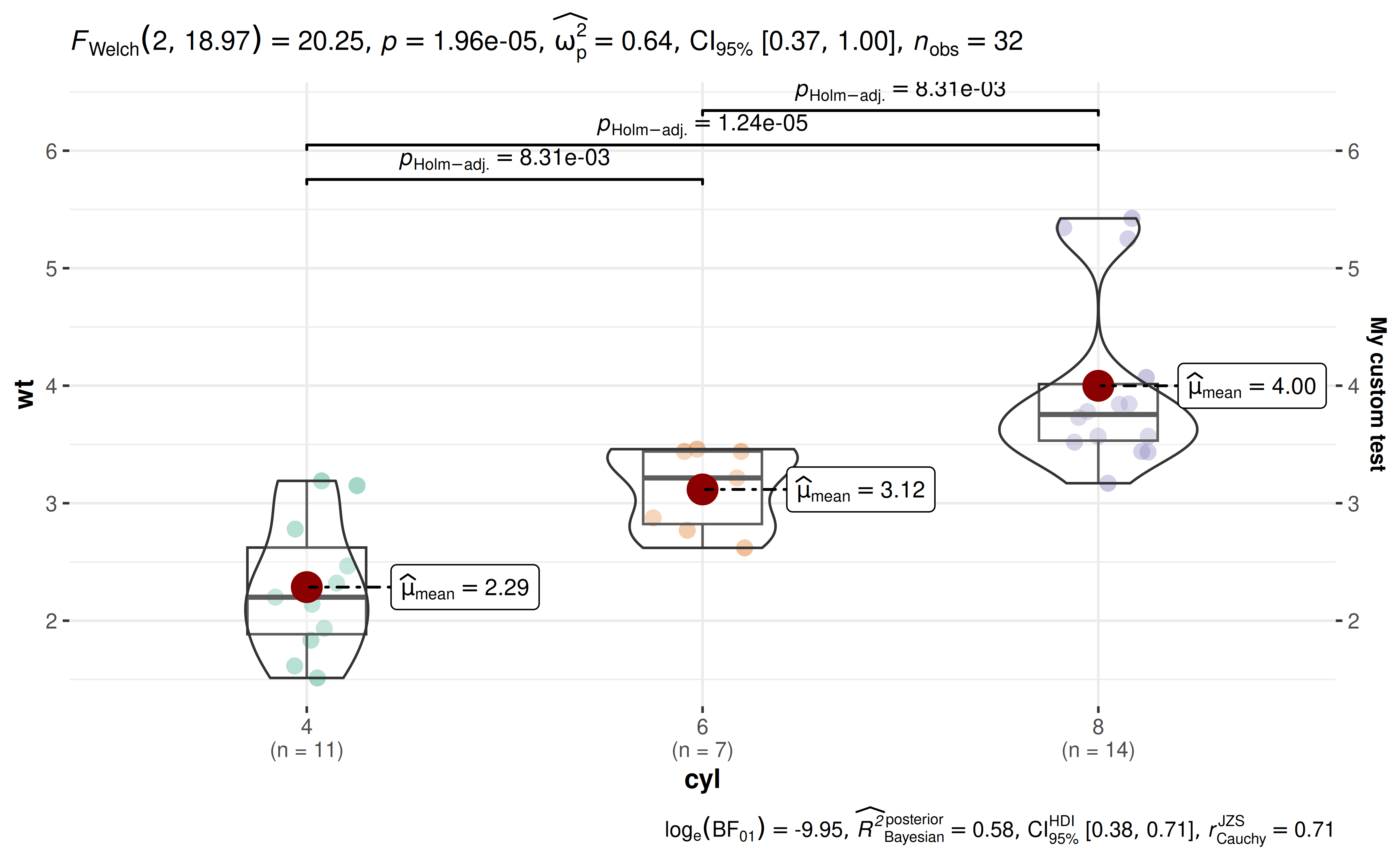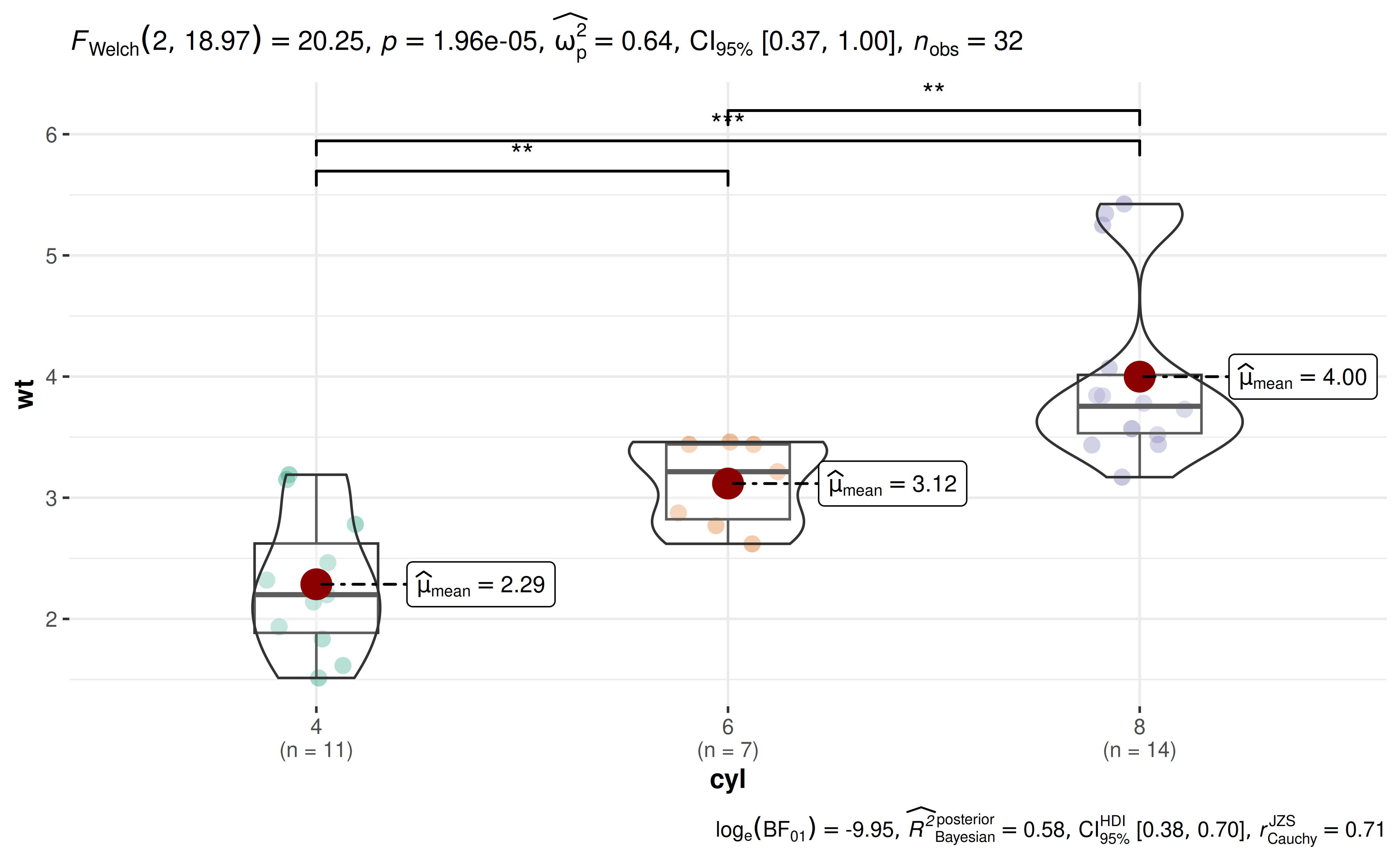 In case you are not sure what was the statistical test that produced the results shown in the subtitle of the plot, the best way to get that information is to either look at the documentation for the function used or check out the associated vignette.
